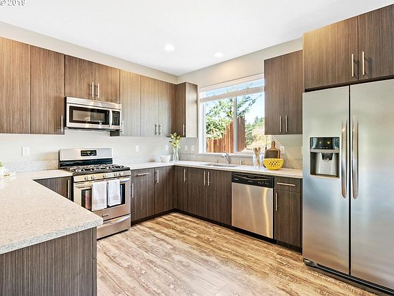 Charming comtemporary style townhome w/ modern amenities & only 5 years old! Turn-key ready! Featuring SS gas appliances, quartz counters throughout, laminate flooring, A/C, forced air heat & a southern facing balcony to enjoy afternoon sunshine. Vaulted ceilings & walk-in closet in master, washer/dryer included w/ extra utility room storage off garage & a fully fenced backyard & patio. No shared walls & great access to freeway! NO HOA!