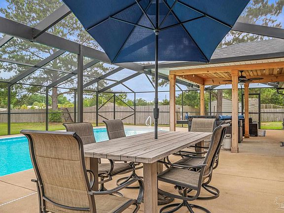 Rare 1-Acre Oasis with a Screened Pool Enclosure, Solar and NO HOA – Remodeled Beauty! Discover this stunning, one-of-a-kind property situated on a full acre of fully fenced land, offering the perfect blend of luxury, functionality, and energy efficiency. Step into your private paradise featuring a 18x36 pool screened enclosure and a cedar-covered patio ideal for outdoor living year-round. This beautifully remodeled home boasts a redesigned chef’s kitchen with a massive 5x8 island, 42" cabinets, quartz counter tops, wall oven, cooktop, soft close drawers, custom pantry. Wood plank tile flooring in common areas, coffee bar, and breakfast bar – a dream for any culinary enthusiast. An electric fireplace adds cozy charm to the spacious living area. Plus, formal dining room, and a cozy library office with ladder. Additional highlights include: 51 solar panels for maximum energy savings RV/boat pad with 30-amp plug (perfect for RV or electric car) 12x20 storage shed Built-in bookshelves with doors in the office Crown molding and chair rail detailing in dining, entry, and office Gutters front and back for full drainage control This property offers the best of indoor elegance and outdoor freedom. Whether you're entertaining poolside or enjoying quiet evenings in the chef’s kitchen, this rare find checks all the boxes