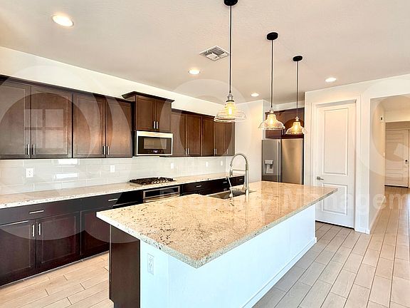 Coming Soon! Available on 12/8/2025. Beautifully maintained, this 2,347 SQ FT single-story home offers 4 bedrooms and 2.5 baths in a functional, well-designed layout that provides both comfort and flexibility. The inviting kitchen showcases an open-concept configuration with modern cabinetry, ample counter space, a center island, and essential appliances including a refrigerator, microwave, oven, dishwasher, and a water RO system. Sunlit and expansive living spaces create an ideal setting for daily living and entertaining, enhanced by a blend of carpet and tile flooring. A versatile additional area can serve as a den, formal dining room, or home office depending on your lifestyle needs. The private primary suite features a generous walk-in closet and an ensuite bath with dual sinks and a spacious step-in shower. Three well-proportioned secondary bedrooms and a conveniently located full bath offer comfort for family or guests. The dedicated laundry room includes a washer and dryer, while whole-home centralized AC, ceiling fans, and a garage-located water softener contribute to overall efficiency. A 3-car garage with a workbench, additional storage, and an extra parking pad behind the side gate provide standout convenience. The backyard delivers an exceptional outdoor retreat with a private swimming pool, a covered patio, a grassy play area, and a built-in inground trampoline set near the pool, all fully fenced and ideal for outdoor living and recreation. Located in the sought-after Archer Meadows community, residents enjoy access to community amenities and proximity to local dining, shopping, and recreation. Positioned within the J.O. Combs Unified School District and minutes from San Tan Mountain Regional Park, Queen Creek Marketplace, and commuter routes along Ironwood/Gantzel connecting to US-60 and Loop 202, this home offers a balanced blend of comfort, lifestyle, and accessibility.