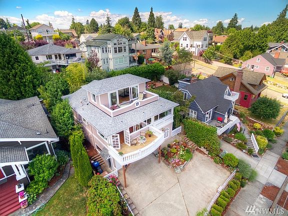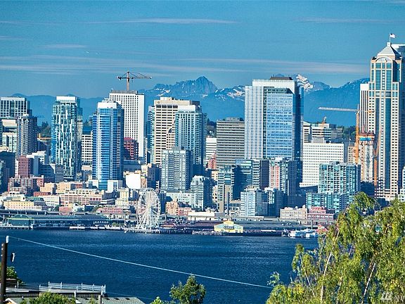 From terraced decks to the travertine slab fireplace, this hillside view home evokes Mediterranean style. The sweeping interior window-scape frames the City and Sound. The main level is an open plan of view & vista, chef's granite kitchen w/ island & Jerusalem Gold limestone floors. The master BA has both Bianco Carrara marble slab & tile. All enriched with European designer fixtures. Equally crafted w/ Emperador Marble tile & Qualzite counters is the ground level MIL unit with 2 BRs & 1100 SF.