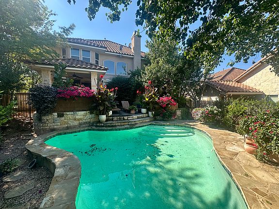 REFRIGERATOR INCLUDED! Beautiful 2 story 4BR 3BA home w/pool on cul-de-sac at Falconhead. Extensive outdoor entertaining area w/ pool, grilling station & FP. Custom dog house for 2 in fenced dog yard. 2 offices w/built-ins. All BDRMS on 2nd floor. 1st fl: private office, full bath, dining, eat-in kitchen, family rm w/stone FP & wet bar w/kegerator. Charming tree top custom office off BR4 & MBR closet. Gas cooking.