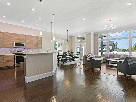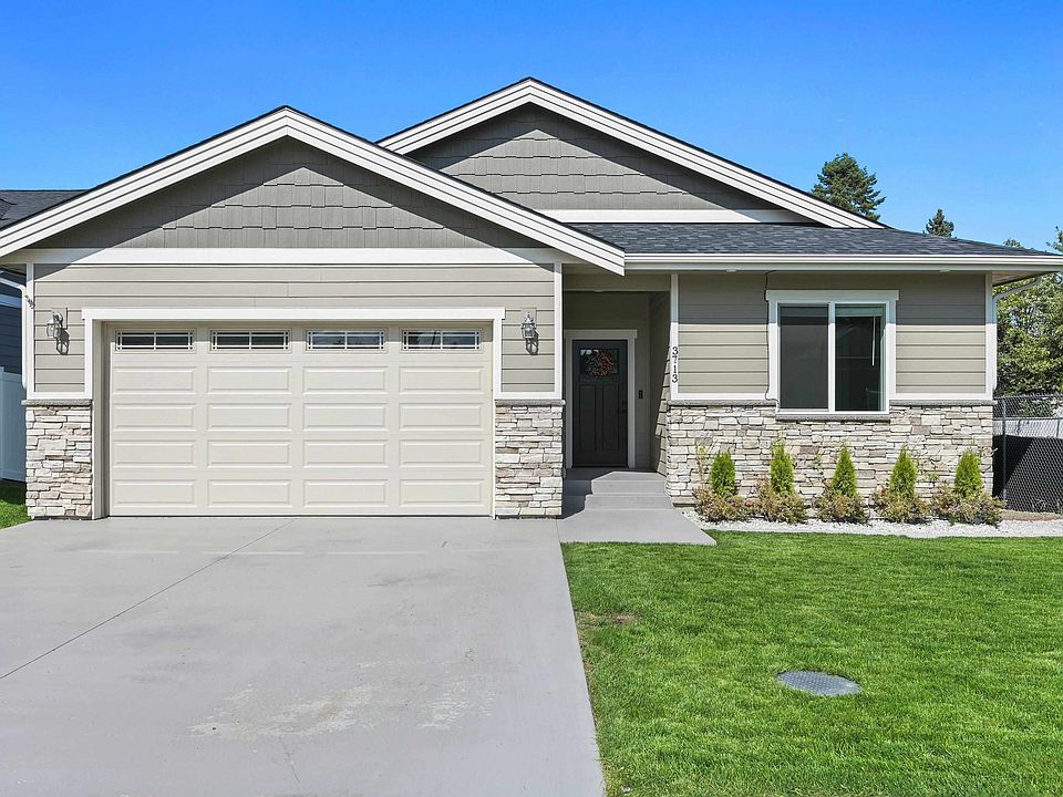 An elegant, contemporary and spacious home on Spokane's South Hill. The open floor plan boasts cathedral ceilings and a great room design which is anchored by the stunning and well-appointed kitchen. Wrapped in quality materials throughout, from the HardiePlank and stone exterior to quartz counters running through the stainless steel kitchen, as well as in the bathrooms. The primary bedroom is so generous with a walk-in closet and double vanity bathroom. The covered deck transitions to a concrete pad which is wired, providing a perfect location for a hot tub. A lush lawn, concrete curbing and rocked bed with plantings complete this fantastic home. Call today for more information or to schedule a private showing!