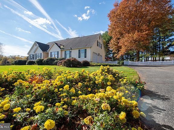 Gorgeous cape cod nestled on almost 5 acres in a beautiful, private, country setting. This location is breath taking and the home has been meticulously cared for. Almost 2800 sq. ft. on main two levels along with full basement. Main level has a spacious, primary bedroom and attached primary bath along with 2 more bedrooms and full bath. Main level laundry room. 2nd level has two more bedrooms along with full bath, too. Large 24'x12' country kitchen with Granite counters, built in desk and table space. Living room has woodburning fireplace with custom, wood mantle, cathedral ceiling and wall of windows overlooking private backyard retreat. Hardwood floors through out main level except bedrooms. Home has attached 2 car garage measuring 23'x23' along with additional detached 2 car garage measuring 24'x22' . Off rear of home there are multiple, adjoining decks with 14'x8' built in, swim spa. Exterior has amazing landscaping and tree lined driveway. Lot is mostly cleared with potential for horses. Rare find that is sure to please. 10+++
