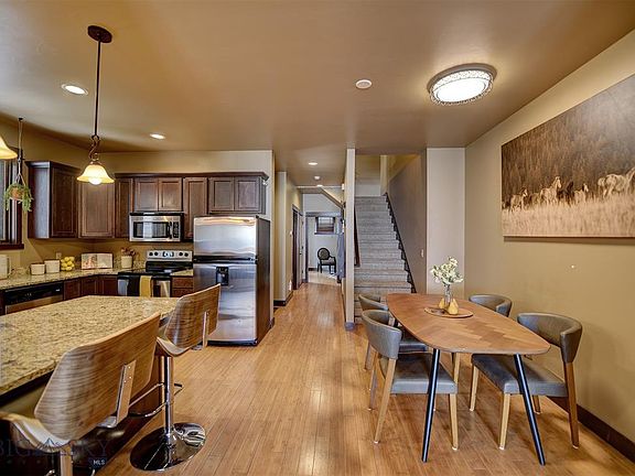 This end unit townhome is centrally located across from the 100 acre park, with access to trails, fishing and unobstructed views of the Bridger Mountains. 2 bedroom, 2.5 baths with office/den space and flex room. 2 car detached garage. Upstairs master does not share walls with the neighbor. Come check out this gem before it's gone! Call your favorite Realtor® today to schedule a showing!