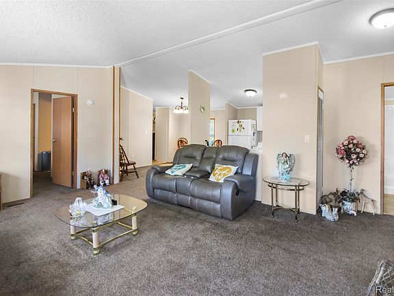 Sharp manufactured home with a brand new 2-car attached garage located in the highly desirable Orchards community in Carleton. The Orchards is a 55+ gated community offering fantastic amenities including a clubhouse, fitness center, and pool. This home is designed with convenience in mind, featuring a ramp for easier access along with a single step entry.