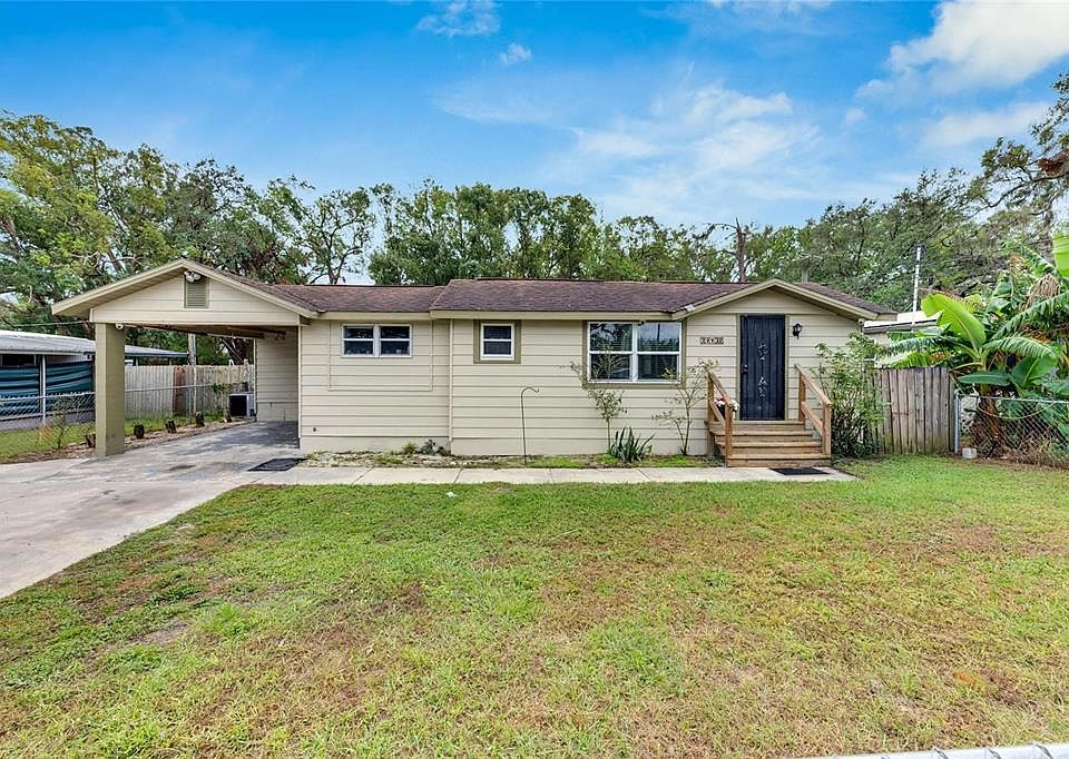 NO HOA, NO CDD! Great for first time homebuyer or rental. Envision converting carport to a 3rd bed and attached laundry with standalone toilet to a half/full bath (subject to county approval) This charming Midcentury Modern ranch home with carport sits on nearly 1/4 acre and features 2 bedrooms, a spacious bathroom, and a laundry area. Enjoy the beautiful heart-of-pine floors in the main living areas, a concrete driveway, and a partially fenced yard with a brand-new above-ground pool. Conveniently located near downtown Zephyrhills with easy access to Tampa and Orlando, this home offers incredible value at this price point. Act quickly—this gem won’t last long!