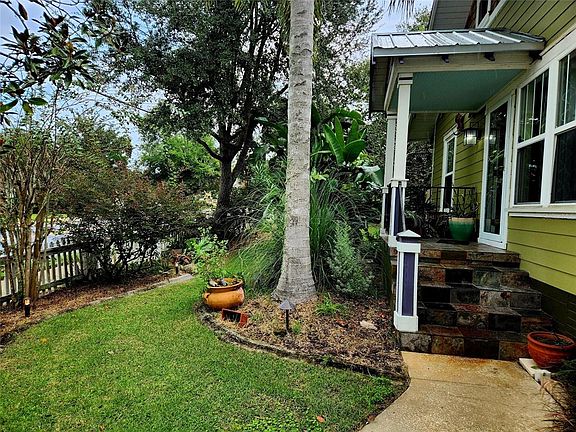 Talk about the WOW factor!!! This STUNNING 1930s FULLY MOVE-IN READY VINTAGE 3BR/2BA SFH that is a timeless beauty blending vintage character, modern luxury, and peaceful outdoor living all together on a .33-acre parcel. Located in the heart of Dade City, this home boasts of strength and craftsmanship that reminds us of the way they built homes long ago. Homes exterior is constructed of Dade City Pine and Hardie board and offers a METAL ROOF (2019), HIGH CEILINGS throughout, and is FULLY REMODELED. ELEGANCE and comfort around every corner with spa-inspired bathrooms and a freshly painted spacious kitchen completely updated with new ceilings, pocket lighting, gorgeous new Quartz countertops, a fabulous vintage sink, and solid wood cabinetry stripped and repainted, plus brand new tile flooring installed that combines vintage allure with modern convenience. There are HICKORY WOOD FLOORS and abundance of recessed lighting that enhances the bright, open living spaces. A tray ceiling in the family room with CUSTOM BUILT-INS. The FORMAL DINING ROOM offers built-in bench seatings and underneath storage. The large dining room windows offer a dual benefit by bringing in natural light while providing a PICTURESQUE view of the OUTDOOR GARDENS that makes eating in pleasurable while soaking in the beauty of your surroundings. Enjoy illuminated lighting within your lush backyard garden TROPICAL OASIS, complete with fruit trees plus orange trees & 4 kumquat trees, raised garden beds, seasonal flowers and winding paths through vibrant greenery. MULTIPLE DECKS off the family room, kitchen, and third bedroom, you’ll have plenty of outdoor spaces to enjoy nature. Plus, a decorative, & fully functioning OUTDOOR SHOWER, UPDATED HARDY BOARD SIDING, PLUMBING, NEWER DOUBLE-PANE WINDOWS, and 2022 mini-split systems for top-tier ENERGY EFFICIENCY, NEWER TANKLESS WATER HEATER and BRAND-NEW STACKABLE WASHER AND DRYER for added ease. The primary bedroom floors have been stripped to their ORIGINAL WOOD, offering a blank slate for your personal touch. Also featuring two French doors opening onto a SLATE PATIO that provides the perfect place to unwind and enjoy your unique BACKYARD Oasis. The 2-CAR ATTACHED GARAGE includes a separate storage space, PLUS A ONE-CAR WORKSHOP with its own water supply and electrical panel can be easily converted into a stand alone studio if desired. Two decorative non-working fireplaces between family and living rooms add CHARACTER AND CHARM. PRIVACY FENCING surrounds the LUSH BACKYARD, while the front yard is framed by a classic white picket fence. You are going to love this property.... Truly a must see!!! **All information deemed reliable but not guaranteed*