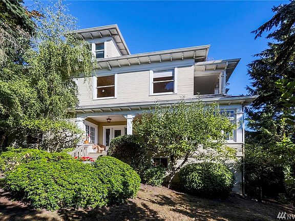 Gorgeous home with large living spaces, original charm intact, a large yard, and glorious views of Lake Washington. Hardwood floors, built-in cabinets with leaded glass and more. 5 bedrooms on the 2nd floor, plus a deck capturing the views, stairs to a 6th bedroom in the attic. Living room with fireplace and adjoining sun room. Kitchen and baths need renovating, but very solid. Yard to the south is a separately platted lot, which adds value to the property. Quiet, low location.