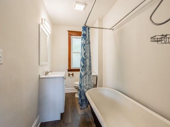 Check out this pet-friendly 2-bedroom apartment on the 1st floor of this charming farmhouse located in the heart of downtown Brookfield. Highlights include 2 good-sized bedrooms with closets, a full remodeled bathroom, a separate dining room, and a remodeled kitchen featuring granite tops, a classic subway tile backsplash, and a new double basin stainless steel sink. Outside enjoy a wrap-around front porch, dog run, and 2 tandem exterior parking spaces. Other great features include tall 9' ceilings, hardwood floors throughout, and newer double-pane vinyl windows. The apartment has its own gas and electric meters, separate mailbox, and front and rear entrances. Services include weekly garbage pickup, lawn care, and snow removal. The building offers a laundry room with coin-operated washer and dryer. Great locations! STEPS AWAY FROM THE METRA TRAIN STATION, schools, restaurants, shops, and near beautiful Kiwanis Park.