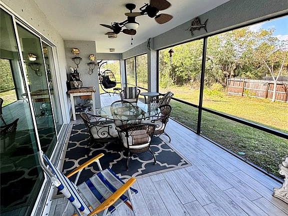 Welcome to Your Punta Gorda Paradise! Experience the perfect blend of comfort, elegance, and Florida living in this beautifully designed 2-bedroom, 2-bathroom home spanning 1,400 square feet. Built in 2019 on a triple lot (18,021 sq ft total), this property offers the space, privacy, and peace of mind you’ve been searching for. Perched on high ground and untouched by the storms of 2024, this home delivers both security and serenity in one of Punta Gorda’s most sought-after settings. Step inside and be greeted by vaulted ceilings, stylish tile flooring throughout, and fixtures that exude modern sophistication. The open-concept layout creates a light and airy flow, enhanced by hurricane-impact windows that invite an abundance of natural light while keeping you safe and sound. The spacious primary suite is your personal retreat—featuring sliding doors that open to the oversized, screened-in lanai where you can unwind and enjoy the evening breeze. The luxurious ensuite bath includes a dual-entry walk-in shower with Dual showerheads for a spa-like experience. Entertain or relax in the expansive screened and covered lanai, complete with beautiful tile flooring and accessible through triple sliding glass doors. This seamless indoor-outdoor connection is perfect for gatherings, alfresco dining, or simply soaking up the Florida sunshine in total privacy. An irrigation system that can keep your lush landscaping in pristine condition year-round. Location couldn’t be better — just minutes from downtown Punta Gorda’s charming shops, fine dining, and waterfront activities. Travel is effortless with Punta Gorda Airport only 5 minutes away, and Southwest Florida International Airport (RSW) in Fort Myers just a 40-minute drive. Quick access to I-75 makes exploring all of Florida a breeze. Love the outdoors? The Darst Boat Ramp is right down the street, offering easy access to Charlotte Harbor and the Gulf of Mexico, and golf enthusiasts will enjoy a different course for every day of the week within 30 minutes. This home truly offers it all — luxury, safety, and an unbeatable location — making it one of the most desirable finds in Punta Gorda. Don’t miss the chance to make this remarkable property your forever home or seasonal retreat!