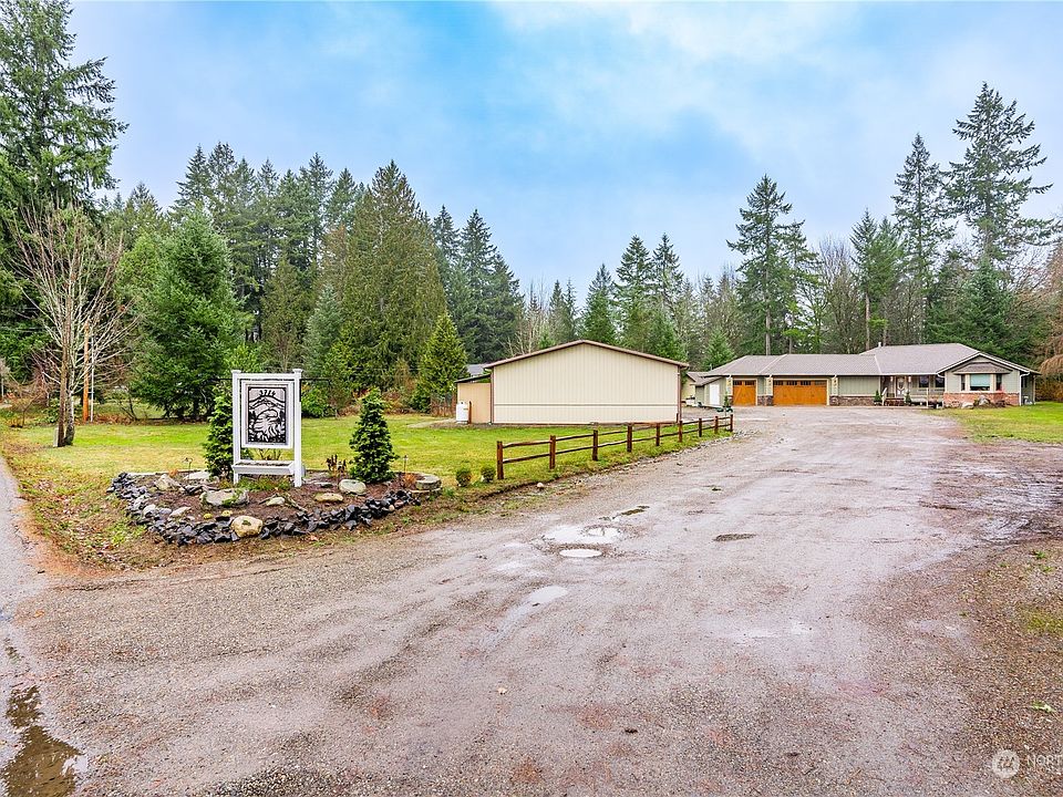 Phenomenal rambler in NE Olympia. Perfect combination of acreage & privacy, rural setting, yet close in to town, 36' x 48' detached shop with propane heat. Spacious single level home with an attached 3 car garage, 2 additional outbuildings or storage sheds that are each 10' x 20'. Enjoy the deck in the backyard or soak or swim in the 14' swim spa. Newer 50 year comp roof, newer windows with low-e glass, newer furnace/heat pump, new garage doors. Wired for generator & generator included. This home is warm & inviting with a timeless floorplan & loads of character & an abundance of storage. Vaulted ceilings with exposed tongue & groove wood ceilings. Gourmet kitchen with granite counters & large island. Close to Western Chehalis Trail.