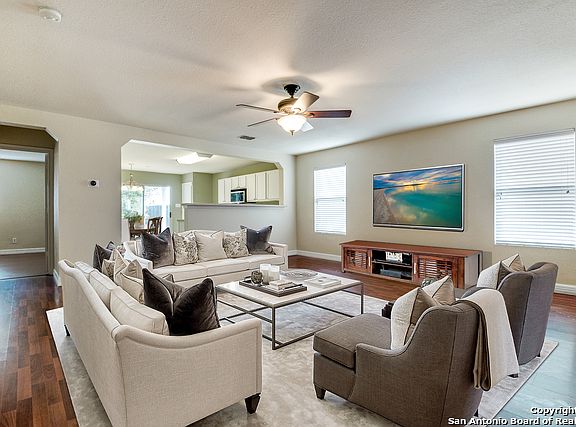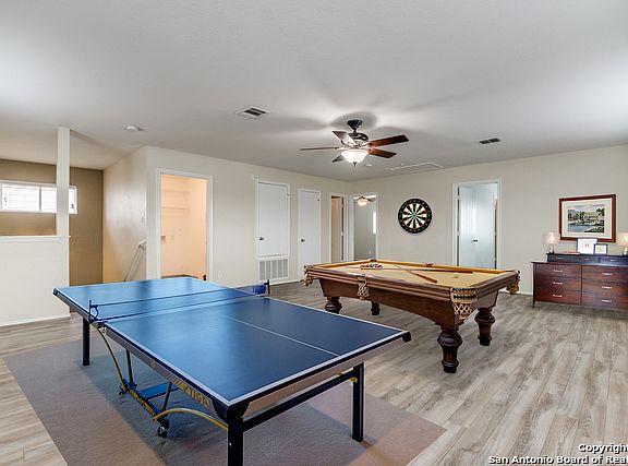 Location, Location!! Highly rated schools in NEISD. Walking distance to Cibolo Green elementary (one block away). Welcome to a beautiful and very well taken care for home. The roof was replaced in 2017 and a brand new HVAC system was installed in 2019. This property offers the convenience of solid flooring surfaces in the whole house (no carpet at all) and a very comfortable layout. Main retreat is located downstairs. Upstairs you will find a massive bonus/family room ideal for entertaining or for a great homeschooling area. Laundry room is upstairs for your convenience. The flagstone patio with built-in bench is the perfect setting for those family gatherings or just relaxing with your favorite cup of coffee and some s'mores. Mature trees offer privacy! Conveniently located near restaurants, movie theaters, shopping centers and much more!!! House sits in a cul de sac at the top of the hill, which allows to beautiful views from the upper bedrooms.