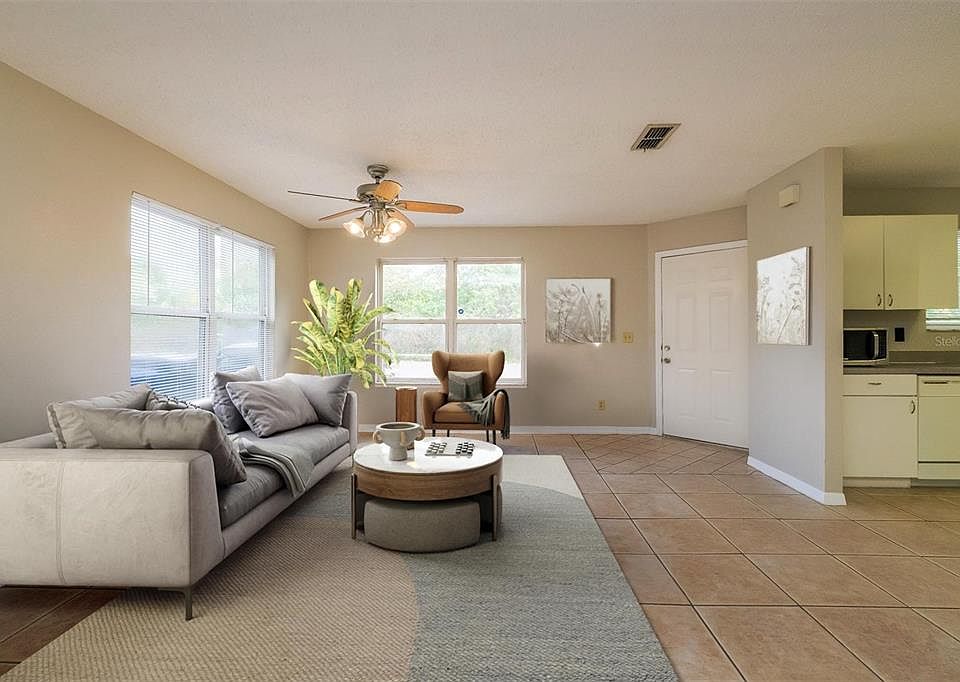 Lovely three-bedroom, two-bathroom single-family residence located in Tampa, boasting around 1,052 square feet. Recently refreshed with new interior and exterior paint, this home features a spacious kitchen equipped with abundant cabinetry and ample countertops. The well-designed floorplan includes generously sized rooms, complemented by durable ceramic tile flooring throughout for easy maintenance. The property sits on a sizable lot, offering ample space both in the front and back for family activities. Additional highlights include convenient inside laundry hookups, window blinds in every room, and ceiling fans for a refreshing breeze. With its prime location, this home provides easy access to all your essential needs. Ensure you explore this residence before making any decisions – it might be the perfect fit for you!