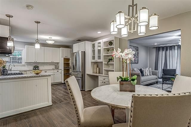 UPDATED 1,621sf, 3 bed, 2 bath 1-story in MIDWAY HOLLOW. Homes in this transitional neighborhood range from over $400k to $1.5 million. This home boasts a MODERN, UPDATED INTERIOR just painted in July. So INVITING w-RICH HARDWOODS, SPACIOUS KITCHEN, GAS RANGE w-2 OVENS, beautiful TERAZZO counter-tops, LOTS of STORAGE & PLANNING DESK w-BUILT-IN shelving. BATHs have CONTEMPORARY FINISHES w-MODERN tile, WALK-in SHOWERS, MARBLE counters & CLAW FOOT TUB in master. RELAX in the HUGE landscaped backyard, complete w-MATURE PECAN tree, PERGOLA, FIRE PIT, CHICKEN COOP & STORAGE bldg. Located near LOVE FIELD & PRESTON HOLLOW. Agents - See Private Remarks for More Info. List of UPDATES is in Supplements.