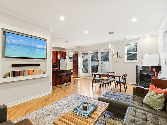 Welcome home to this sun-drenched and incredibly spacious 3-bedroom, 3-bathroom duplex corner unit with parking and two private outdoor spaces! This meticulously maintained home offers the perfect blend of comfort and style. The main level boasts a beautifully appointed kitchen with sleek stainless steel appliances, tile backsplash, granite countertops, ample cabinetry, and a breakfast bar that overlooks the inviting open-concept living space which is highlighted by a cozy gas fireplace-perfect for those chilly evenings. Step outside through the sliding glass doors to your oversized private patio, an ideal space for outdoor entertaining and summer barbecues. Convenience is key, with one bedroom and one full bath conveniently located on the main level. Retreat upstairs to your primary bedroom which is a true oasis complete with a generous walk-in closet, a private balcony, and luxurious en-suite bath with a double vanity, jacuzzi tub, and separate glass-enclosed shower. The second floor also features a third generously sized bedroom, another full bath, and a conveniently located laundry area. High ceilings with crown molding, custom windows treatments, recessed lighting, gorgeous diagonal hardwood floors, and tons of closet space throughout. Recent updates include a new furnace with a 10 year warranty (2022), new sump pump (2021), new garbage disposal (2022), and several cosmetic updates throughout. Incredibly low HOAs round out this lovely home. With dedicated parking and easy access to the CTA Brown Line and expressway, you're perfectly situated for commuting and exploring the city. Don't miss out on this fantastic opportunity - schedule your showing today!