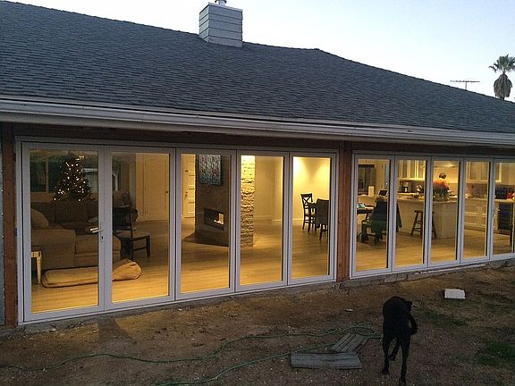 Completely remodeled contemporary Sherman Oaks Hills view home. Behind mature privacy hedges and a landscaped courtyard, this home opens up to a bright great-room, built to entertain. The living room has a 2-sided fireplace with two seating areas. Oversized formal dining room sits between the chefs kitchen and fireplace. Kitchen features high-end appliances with a grand island, extra seating, and a breakfast nook adjacent to the family room. 40 linear feet of accordion-style doors throughout the entirety of the home invite you to enjoy the spacious backyard with city and canyon views. Soak in the weather at 3 separate outdoor areas any time of year. Property is located in a serene and flat cul-de-sac with excellent access to Mulholland and the Westside. Remodeled down to the studs with myriad personalized touches -like the outdoor fire pit, outdoor TV lounge, bonus office room, custom waterfall planter and hardwood floors throughout. True SoCal indoor/outdoor living at its finest.