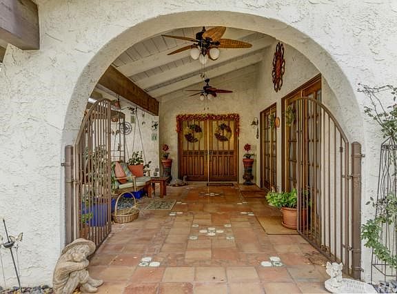 Contact listing agent, Lavonne Webb for more information (909)913-7813 or lavonnewebb@msn.com. This sprawling Spanish style single story home, is an entertainers delight. Living and Family rooms, Master Suite and Game room all have French doors leading to the courtyard. A large outdoor fireplace provides a cozy atmosphere for the outdoor dining and lounging areas. a Massive family room with a fireplace and a wood burning stove is home to several conversation areas and can be flexible in the layout. Separate game room and a formal dining room. Four bedrooms with the master suite and a separate suite or guest quarters on its own wing. Pavers and arched door ways add to the character of the home. Quaint kitchen with stainless steel appliances including, a double oven, breakfast nook and walk-in pantry. Large laundry, vinyl dual pane windows, full length rear patio and majestic oak trees in the rear yard. All of this on just over an acre of land.