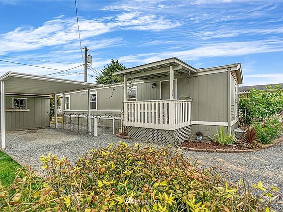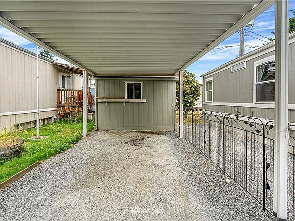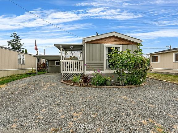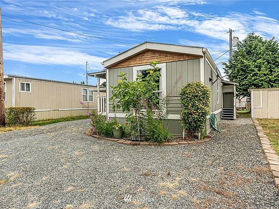 This lovely remodelled Marysville manufactured home is located in a friendly, clean 55+ park. The home has 2 beds and 1 bath with roughly 700 sf of living space, and features: newer waterproof flooring, fresh paint inside and out, and an updated kitchen with ample cabinetry, counter space, and plenty of natural light. All appliances stay with the property along with a mounted LG flat-screen TV and an electric fireplace. Other features include: double-pane windows throughout, a skylight and a walk-in shower. The back yard is partially fenced and there is covered parking as well as 2 sheds with power. Lot rent includes garbage pickup. The home is on the North Marysville/ Smokey Point bus route. Come see this home today before it is sold!