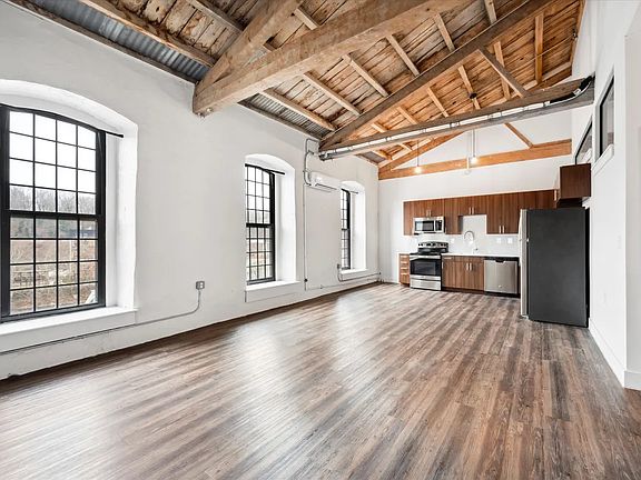 Once the oldest yarn factory in America, Yarn Factory Lofts is now home to an array of one- and two-bedroom luxury loft apartments. Each space incorporates the original design of the building, from restored original hardwood floors and polished concrete to the exposed beams and brickwork. Each space is lit by large windows accompanied by soaring ceilings. All kitchens and bathrooms offer contemporary design and appliances that tastefully compliment the historic atmosphere of the space, including custom-made industrial fixtures and decor.