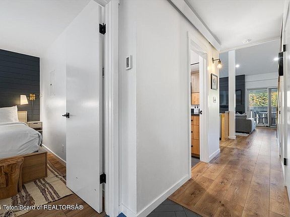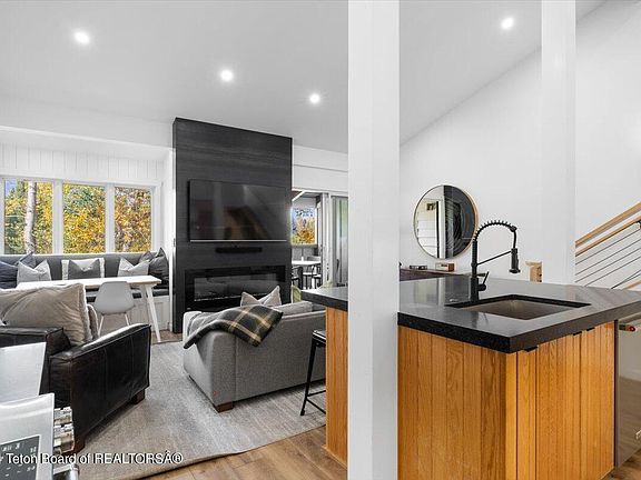 This stylishly remodeled two-bedroom, two-bathroom top floor condo is conveniently located close to the Jackson Hole Mountain Resort, Grand Teton National Park, the Town of Jackson, a bus stop and over 70 miles of bike paths. Teton views, a serene creek out the front door and a covered porch to take in the wonderful mountain scenes. Short-term rentals are permitted. An ideal offering in Jackson Hole.
