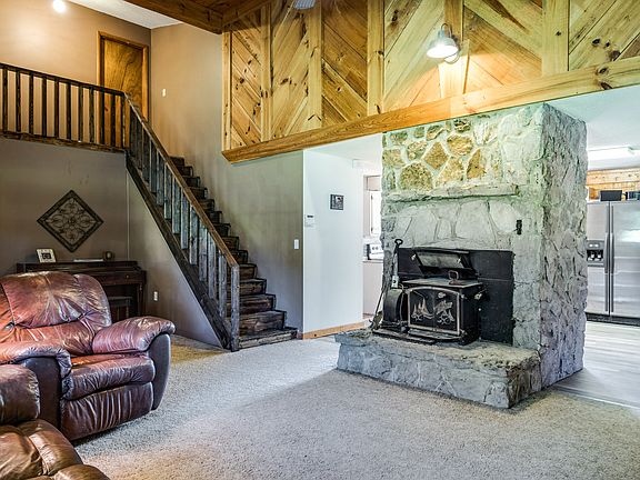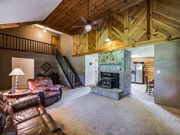 This is the perfect Log House On 4.72 Acres - Pond , Pole Barn 30X40, Covered Deck And Open Deck. Fruit Trees and a great location.