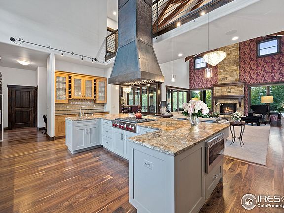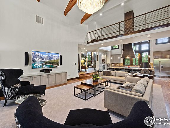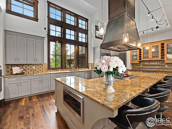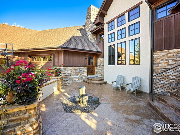 This magnificent & majestic modern custom-built home nestled on a large lot in Fossil Lake Ranch offers a meticulously designed space with a stunning perpetual appeal inspired by Europe. As you enter the property,the attention to detail is immediately apparent,from the welcoming front porch with a water feature to its wrap-around covered deck.Spectacular Entry with a dramatic staircase and a formal welcoming office.Impressive open floor plan design with soaring ceilings,decorative wood beams,black walnut floors,,solid alder millwork,modern light fixtures,surround sound throughout & an abundance of windows, maximizing views & natural light. The Kitchen is stunning,well equipped with luxury appliances, including a built-in Sub-Zero Refrigerator, beverage refrigerator, large center Island, custom luxury Viking range hood, copper sinks, extensive cabinetry, and a walk-in pantry. Luxurious formal dining room with sliding doors leading to spacious outdoor space easily seats 10. Primary suite boasts a sizable sitting area with deck access, large walk-in closet with laundry facility, & spa-like bathroom with a walk-in shower with multiple shower heads. Upstairs offers two additional en-suites, each with a private laundry room and a loft. The bright walkout basement features a great room equipped with an intelligent audio wireless surround system from savant, designer Jamo speakers, a wine cellar, a bar, two additional spacious bedrooms with Jack and Jill Bath, a workout room, and a half bath. Enjoy outdoor living with the top-of-the-line outdoor Kitchen with grill area,bar, fireplace, and large covered deck. You will enjoy the art studio with a separate entrance. Grand-scale entertaining, inside & out, with warmth, light, layout & privacy suitable to modern family living. Walking distance to Fort Collins Premier schools, proximity to restaurants, shopping, and I 25 will bring plenty of convenience to your daily life. The ultimate lifestyle awaits you at 3715 Rocky Stream.