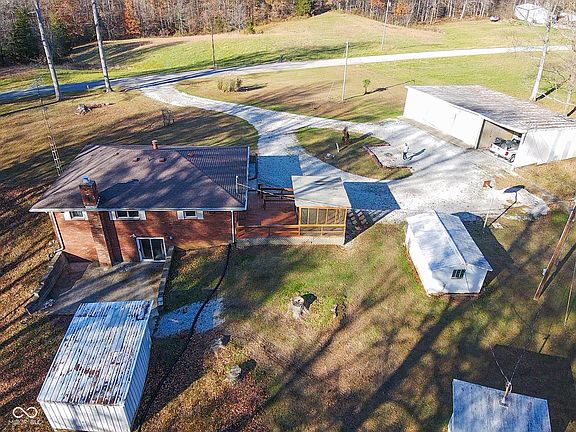 Brick ranch home and large pole barn on 6.53 wooded acres. Welcome to country living at its finest! Stretch out and relax in this 2 bed, 1 1/2 bath, fully electric home with a full, walkout basement. As you enter this home you are greeted with well-kept, original wood flooring. The nice size living room measures 17X12 and has a large bay window providing lots of light and an excellent view of the passing wildlife living on the property. Just past the living room you will find the spacious kitchen complete with stainless steal appliances, lots of counter space and a nice island perfect for an additional workspace. Adjacent to the kitchen is the dining room with nice wood flooring and a large pantry. Originally this home was a three bedroom, but once the kids moved out the third bedroom was converted into an attached dining area, making the kitchen large and extremely functional. Down the hall are the two bedrooms, one with wood floors and the other with carpet (wood is under the carpet). The hall bath is spacious and houses a secondary washer and dryer which comes in handy if carrying laundry down the stairs isn't for you. Downstairs the walkout basement offers an additional family room with a brick hearth, a storage area, laundry and the half bath. A shower is installed but not currently functional. The basement walks out to a nice cement patio perfect for enjoying the fall weather. Another excellent space is the screened in porch just off the kitchen. So many choices to enjoy bird watching and the peace and quiet of the country. Let's talk about why you are really looking at this property, the pole barn. With three bays and two lean-tos, I challenge you to fill this barn. Fully electric, you can keep your tractors, cars and chainsaws safe from Mother Nature and possibly get a few more.