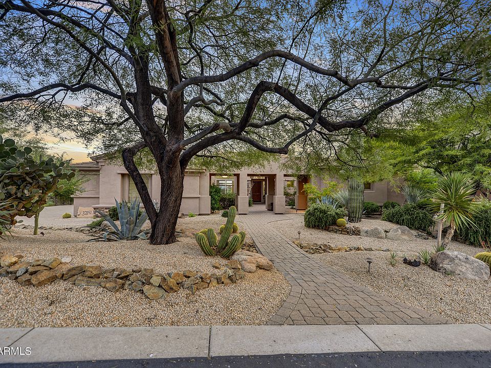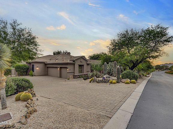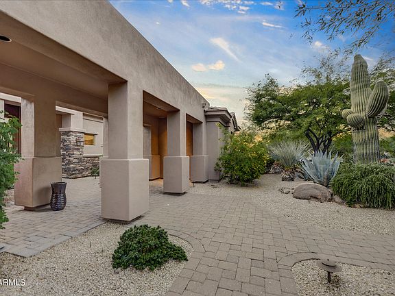 Located in one of North Scottsdale's desirable gated neighborhoods, this beautifully crafted home combines style and substance. The home is situated on a south facing lot and enjoys spectacular mountain, city light and sunset views. The 3915 SF of very functional living space flows seamlessly throughout. The split floor plan features a large Master Bedroom with sitting area and fireplace and bathroom suite with separate his and her vanities, tub, walk in shower and large walk-in closet with custom built-in's. On the opposite side of the home are two ensuite bedrooms separated by a bonus or room well suited for crafts. The great room features a fireplace, separate dining area and an open kitchen with bar seating and breakfast area. The transition outdoors, highlighted by the negative edge pool with spa, covered dining areas, built-in BBQ, putting green and cozy fireplace, opens to amazing panoramic views. A separate guest casita and side-entry three car garage completes this wonderful home.