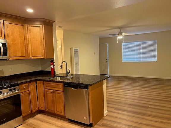2 bedroom, 1 bath, totally new remodeled throughout, Kitchen, stainless refrigerator, stainless dishwasher, washer/dryer in apt, recessed lighting, counter top, disposal, newer bathroom, newer dual pane windows, new flooring, new paint, new blinds, new light/fans, one story, fenced backyard, de-attached 1 car garage, ground floor, excellent location close to shopping, restaurants & theater. Easy commute access near BART and 880 Freeway, non-smoker