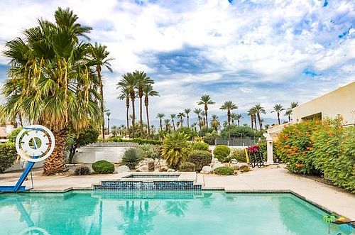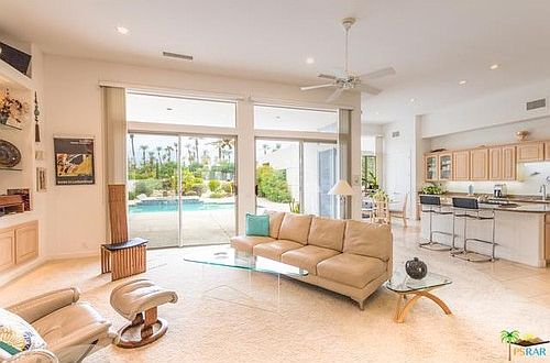 ocated in the fabulous, luxurious, and quiet Rancho Mirage neighborhood of Tamarisk Country Club is this large contemporary private home with a fully detached casita. Minutes from Palm Springs, PSP airport, and Palm Desert, this might be one of the best locations of the valley! This 5 bedroom home offers a wonderful entry via a circular driveway. You will notice the impressive volume of the main room as soon as you step through the entry way. Clear across the entrance, through the wall of glass, is the pool centered on the half acre lot with Western and Southern views. The private master bedroom wing has a fireplace and a large master bath with walk-in closets. In the other wing of the house are the two other bedrooms with en suite baths. In the yard, next to the large covered patio with outdoor fireplace, is the 2 room casita w/ kitchenette, ready for a comfortable guest experience or full time living help. The extra large 3 car garage is adequate for any extra four wheel toys.