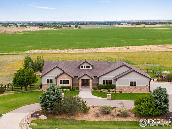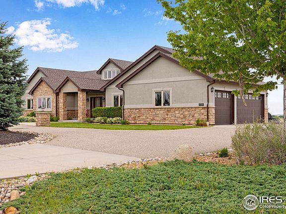 Nestled in the sought-after Soaring Eagle Ranch subdivision, this stunning ranch-style home sits on 2.61 acres and offers 5,429 total sq ft, with 4,846 finished sq ft. The property includes a 787 sq ft 3-car attached garage and a 763 sq ft detached garage/shop. Enjoy privacy, unobstructed Rocky Mountain views, and direct access to open space. The walk-out basement, vaulted ceilings, and knotty alder trim add character and functionality throughout. The main level features wood flooring, an open layout, and a kitchen with new Cambria quartz countertops, stainless steel appliances (including double ovens and a gas range), bar seating, and a large butler's pantry. A sunny breakfast nook and separate formal dining room offer flexible dining options. The primary suite includes deck access, mountain views, a luxurious 5-piece bath, and a large walk-in closet. Step outside to a huge composite deck with a pergola-covered section and a new open-air extension-perfect for enjoying Longs Peak views morning to night. The main floor also includes a home office, two additional bedrooms, a full bath, half bath, laundry, and a mudroom. Downstairs, the expansive walk-out basement boasts a rec room with a kitchenette, space for games and media, a theater room, an additional bedroom and bath, a private workout room, and walk-out access to a covered patio with remote-controlled sunshades and under-deck water protection. The beautifully landscaped yard includes a fenced area, flagstone patio, firepit, and raised garden beds, irrigated by a community pond. Energy-efficient upgrades include owned solar panels, 2x6 framing, a new tankless water heater, and a 2021-updated HVAC system. Contact us for the full list of features or to schedule a showing.