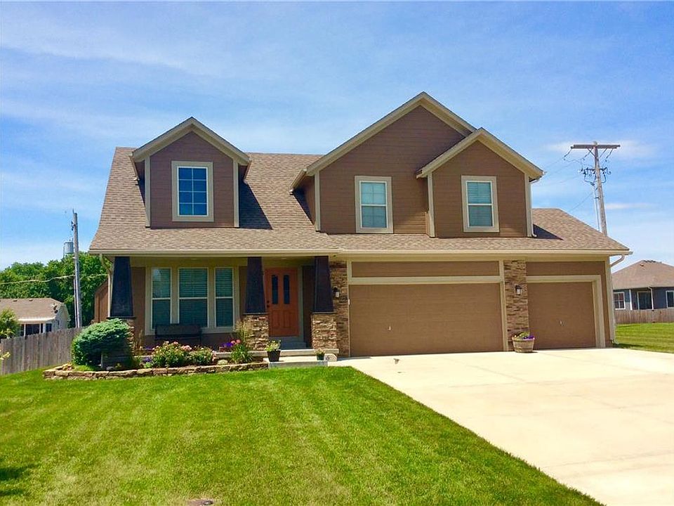 If you are looking for a gorgeous, 4 bedroom home with the master suit bedroom on the main living, with 3 full bath... then this one is a must see for you! Spacious, beautiful yard, stamped concrete landing with fire pit area will meet the needs for family entertainment. Within the home there is a sub basement area you can use for extra storage or a 5th bedroom just down from the finished basement area. Home is located within the award winning Basehor Schools, minutes from the Legends shopping center, and airport. Sellers have 2 dogs, work during the day, and have many kid activities... Showings need to have 1 hour notice and only after 5 and weekends Buyers agent to verify sq ft and hoa fees