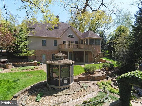 A WALK IN THE PARK, or so it will seem when you make this gorgeous home on an idyllic 2.47 acres your own! Stunning 4 bedroom 3 1/2 bath home features a great room with vaulted ceiling and brick fireplace. Cathedral ceilings in the formal dining room and breakfast rooms. Wonderful custom kitchen. Main level primary bedroom and bath, The main level office could be utilized as a 5th bedroom, if needed with an adjacent full bath. Upstairs are 3 more bedrooms and a full bath, one of which is a large finished space over the garage with big dormers. The house abounds with big windows and doors allowing natural light and wonderful views. The basement is huge, walk out with a French door to a patio under the deck. There is also a pedestrian door and several windows. It is currently improved with attractive concrete polymer floor applied in a large tile print and has a tall ceiling giving ample space for finishing (toilet & laundry sink in place!). The side load garage is a 2 car space with an additional 10'x20' finished flex room perfect for a hobby, private office space, etc. This house is fantastic and you are going to fall in love the minute you walk inside, if you make it that far, before you begin hearing violins because this amazing lot will take your breath away! Beautiful trees, gently sloping terrain, multiple deck and patio areas for entertaining and relaxing and peaceful pastoral views. There is a decorative pond, a screened in Gazebo with an outdoor model train track and 2 storage sheds. This property is brimming with beauteous wonder and is situated on a street of like-kind splendid homes (it is arguably the prettiest street in Franklin County!) Appointment Only!