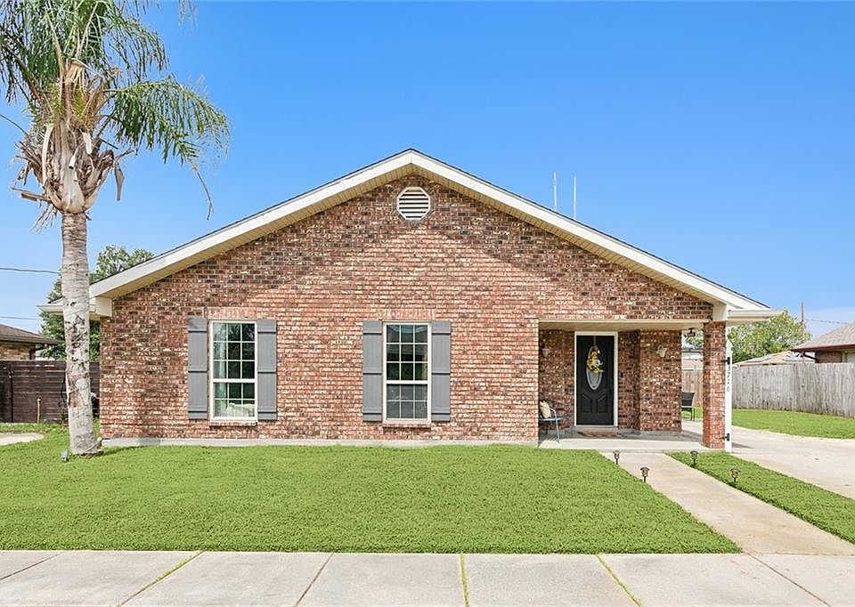 Welcome to this charming all-brick home, offering 3 bedrooms, 2 bathrooms, and 1,330 square feet of comfortable, quaint living space on a 74x74 lot. NEW ROOF February 2025!!! The home features wood floors throughout and tile in the kitchen, baths, and laundry room, a cozy wood-burning fireplace, and vaulted ceilings in both the living room and primary bedroom with inside laundry room for added convenience. Additionally, there is a shed for additional storage in the backyard. Perfectly situated in the heart of Chalmette, this home is walking distance to Val Reiss Park and just a short drive to the City of New Orleans! Don’t miss the opportunity—schedule your viewing today!