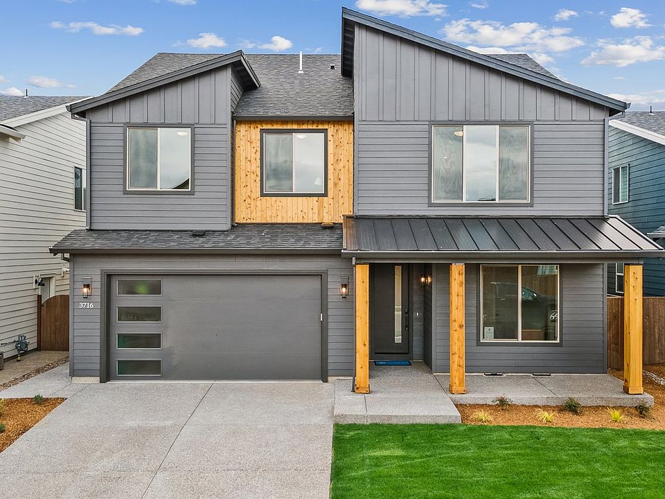 $20,000 CLOSING COST CREDIT OR 2-1 RATE BUYDOWN PROMOTION ON THIS SELECT MOVE-IN READY HOME!** Oversized 3 car tandem garage! Walnut stain mission style cabinetry w/multiple upgrades. Quartz slab countertops w/full tile backsplash in kitchen & baths. Delta faucets/plumbing fixtures in black finish w/undermount sinks. Primary suite inc. 5x4 all tile shower, soaking tub, dual sink vanity & dual walk-in closet. Whirlpool stainless steel appliances inc. 5 burner gas cooktop, wall oven, slim line wall microwave, stainless steel tub dishwasher & chimney hood vent. Gas fireplace w/stained box beam mantel. Retro modern upgraded lighting package. Gas line for future BBQ with 18'x10' covered patio. Tankless water heater, central A/C, front/rear landscaping, fenced w/gate & sprinkler system on timer. Earth Advantage Certified!