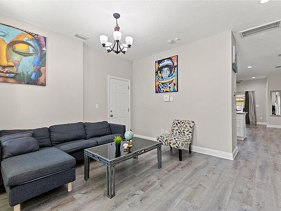 Make this newer build your home, or enjoy the documented $40K+ in revenue that this turnkey Airbnb has consistently produced! Equipped with smart home technology, this 4/2, completed in 2021 and located on a quiet street, provides plenty of space to spread out and relax, as well as an open floorplan great for entertaining! Enter from the large front porch or garage into the living room, and then proceed into the kitchen, where you will find a large, counter height breakfast bar with enough seating for four. The kitchen would complement any home chef, with lots of granite countertops, beveled subway tile backsplash, stainless steel appliances, tall, soft close white shaker cabinets, and a pantry. The kitchen is open to flex space, which is currently being used as the dining area, and presents another option for casual living. A wide slider opens to the lanai at the rear of the home, offering a nice shady spot to enjoy the outdoors. The large primary suite is off on its own, providing privacy as well as lots of storage space with a 6' x 7' walk-in closet, and an ensuite bathroom with a shower stall and frameless glass shower enclosure. The remaining three bedrooms are all of ample size with nice sized closets. Water and pet proof luxury vinyl plank flooring is installed in all living spaces, with carpeting in the bedrooms. Both bathrooms feature unique shower surrounds with a touch of bling and something to look at, and large, rectangle ceramic tile flooring. The smart home features include the front door lock, garage door opener, irrigation system, Ring alarm system (doorbell + 3 cameras, and alarm contacts on all doors and windows), and a Nest thermostat. Every room is wired for wifi, and the kitchen includes an outlet with USB ports. Built of concrete block construction, impact windows, and NOT located in a flood zone, this is the perfect home to hunker down in during the hurricane season. A tankless hot water heater and epoxy coated garage floor are the icing on the cake! Centrally situated, and just minutes from Historic Ybor, downtown Tampa, Channelside, Tampa Armature Works, and all of the major highways (I-4 & I-275), you cannot beat the location! Book your showing today!!