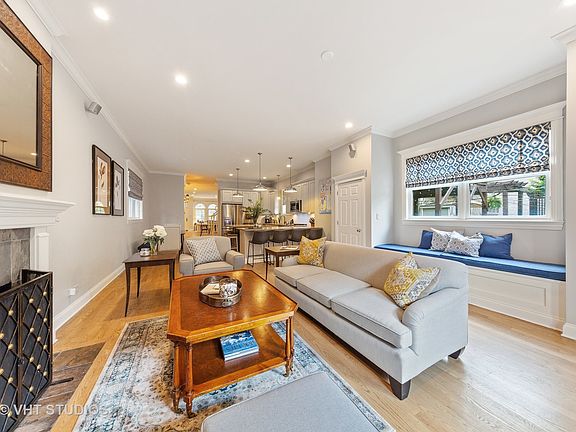 All brick single family is larger than it appears in the photo, and is BIGGER than you could build new today! Room for everyone - work at home / school at home / school at Blaine ... with so much room everyone gets their own bedroom, office, and maybe even a deck/balcony!! Three decks/ balconies - the garage roof deck is wired for sound, outdoor lighting, TV, and a fountain. The pergola and built-in planters create a feeling of beauty, peace and calm rarely found in the city. NOTE THE LOWER THAN TYPICAL PROPERTY TAXES - it's zoned as a 2-flat, so taxes per square foot are a DEAL! The lower level that could be used as a garden rental, nanny quarters or sports fan party palace - 10' ceilings, 2 walls of storage/display cabinets and shelving, 3rd fireplace, AND a full kitchen/bar with Bosch dishwasher, keg fridge, range and full refrigerator/freezer. Gracious center staircase and powder room mark the passage to the open kitchen (quartz counters/new subway backsplash/stainless steel appliances) with island AND peninsula AND eating area. An addition was added in 2005 by Foster Dale Architects with attention to every detail! See floor plan for more details - walking distance to Blaine and Southport shopping/retail. This block is a gem - and it's a happy home filled with joy, ready for the next owner to create their own happy memories. *** See Virtual tour link for walk through...