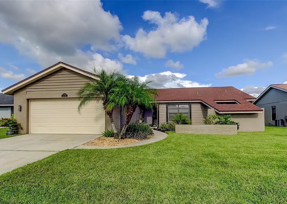 Welcome to your future home, located in the quiet, family oriented community of Fairway Springs connected to Longleaf and in the Trinity area. With top rated schools, safe atmosphere, and wonderful amenities! This beautifully well maintained three bedroom two bathroom property is move-in ready and offers the perfect blend of comfort, efficiency, and lifestyle. Has a bright open floor plan with plenty of natural light. Solar panels w/ 22 remaining years of power guarantee warranty (fully transferable and balance to be paid off at closing) to combat high power bills. Water views from your backyard. Fully updated kitchen, recently painted inside and out, updated guest bathroom, new water softener w/ carbon filtration, upgraded electrical panel and breakers, whole house filtration system on newer high efficiency a/c and much more. Community pool and amenities for the whole family to enjoy. A mini split in the garage perfect for a workshop, gym or extra living space. This home provides not only comfort and convenience, but also the peace of mind of living in a welcoming community that prioritizes family living. Whether you’re enjoying the community pool, taking in the water view fishing in your bass filled pond or simply relaxing in your spacious garage retreat this home truly has it all. Centrally located between Tampa and the beautiful Florida beaches. Don’t miss out and schedule your private tour today!