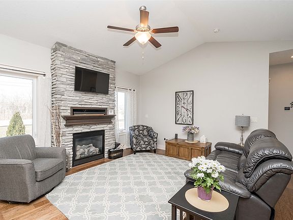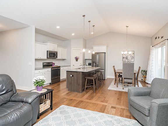 Shows like new! This inviting villa home is convenient to Johnston or Ankeny. This home lives large, with 2381 finished square feet, and four bedrooms! Covered front porch area welcomes you to this inviting villa home, convenient to Johnston or Ankeny.Gorgeous, efficient kitchen with white cabinets and large woodfinish island. Enviable pantry! Cozy up to the stone fireplace in the living area. Great floor plan, with master suite with large closet which connects to the laundry area. Second bedroom and bath on main level--great for guests or home office. Two more bedrooms in lower level, served by a third bath. Great entertaining space with excellent wet bar. Excellent storage, too! Fenced yard with nice landscaping, easy access to walking trails and community pond. Low HOA fee covers trash service, snow removal on community streets, common area and pond maintenance, street lights. Close to all the things to do at Prairie Trail!