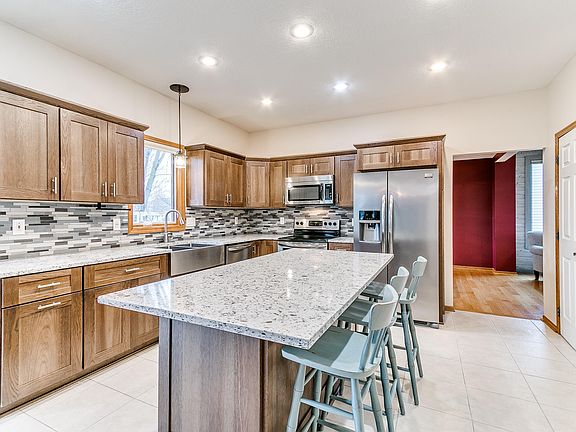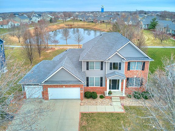 This recently updated 5-bedroom, 4-bath residence, sits adjacent to the neighborhood pond in the established Northridge Heights Subdivision and within the award-winning Gilbert School District. The remodeled kitchen has beautiful hickory cabinets, quartz countertops, and a tasteful backsplash that perfectly complements the farmhouse sink. The kitchen features a spacious island perfect for daily living or entertaining. Recent enhancements also include high quality laminate flooring, plush carpeting, and two updated garage doors. Sit back and enjoy the pond view with a new all-weather deck, providing an ideal space for relaxation with family and friends. The shingles, siding, and water heater were all replaced in '23. There are also 3/4'' thick hardwood floors, multiple updated bathrooms, a refined fireplace, and built-ins. The layout includes a formal dining and living room, complemented by a main-level office with French doors. Practicality meets style with updated windows and a newer finished lower level, expanding the finished square footage. The attached garage, offering a generous 623 sq ft, ensures convenience and storage. Enjoy the convenience of walking to nearby amenities such as a grocery store, a locally owned coffee shop, and an array of restaurants. All appliances, including the washer and dryer, are thoughtfully included, making this property a turnkey house ready for you to call home. The sellers are offering a 1-year, American Home Shield, home warranty.