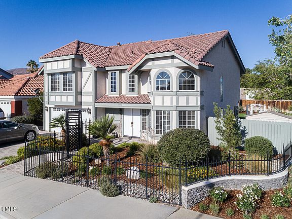 Set on a beautifully landscaped corner lot in Palmdale's Casa Verde neighborhood, this striking two-story home blends architectural flair with modern updates. The entry opens to a dramatic living room with soaring ceilings, towering windows, and a graceful spiral staircase that sets the tone for the entire home.