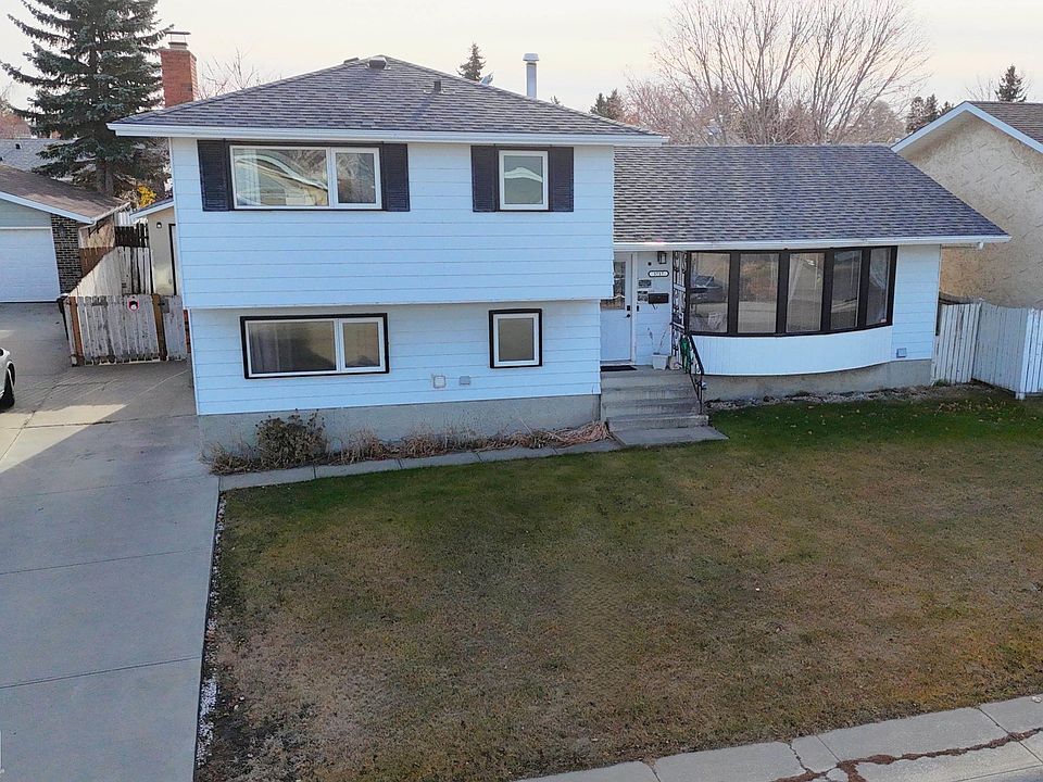 Charming 4-level-split with detached double garage (26Wx24L, heated, 220V) in Belmont. This 1,286 sq ft (plus full basement) home features 3 levels above grade, hardwood & tile flooring and a bright, spacious floor plan. On the main level: a large living room with huge bow window, formal dining area, breakfast nook and a bright kitchen with peninsula and plenty of counter space. Upstairs: 5-piece main bathroom and 3 generous sized bedrooms including the owner’s suite with 3-piece ensuite. The lower level boasts ground level entry, 4th bedroom, 2-pc bathroom with laundry and a beautiful, expansive family room with wood-burning fireplace and built-in shelving. In the basement: rec room, den and 2 additional bedrooms. The fully fenced back yard features a deck, patio, storage shed and woodshed. Located within walking distance to schools, parks, shopping and Clareview Rec Centre & library. Easy access to 137 Ave & Highway 15.