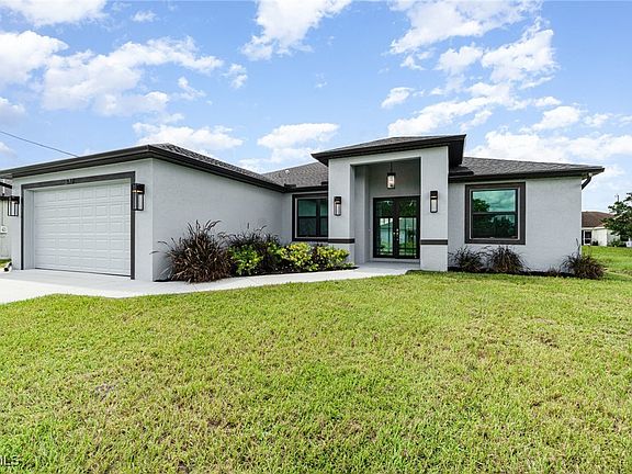 BEST VALUE IN LEHIGH ACRES! BE IN YOUR NEW HOME FOR THE HOLIDAYS! Welcome to your dream home, a brand-new construction in a prime central location in Lehigh Acres. This home offers a perfect mix of luxury, style, and convenience, built with exceptional quality and attention to detail. It's designed for modern living and peace of mind. This spacious 3-bedroom, 2-bathroom residence features a versatile den that's perfect for a home office or cozy reading nook. The split floor plan ensures privacy, with the luxurious primary suite tucked away on one side of the home. The primary suite is a true retreat, boasting an elegant tray ceiling and two spacious walk-in closets. In the spa-like primary bathroom, you can relax in a standalone soaking tub or enjoy the sleek, frameless shower. The bathroom also features two separate sinks and vanities, along with a private water closet. The heart of the home is the chef's kitchen, which features high-end GE brand stainless steel appliances, elegant quartz countertops, and soft-close cabinetry with a beautiful tiled backsplash. This space flows seamlessly into the large great room, making it ideal for entertaining. Throughout the home, you'll find 8-foot doors, decorative lighting and fans, and stunning large tile flooring. The living room also has a tray ceiling, adding an extra touch of sophistication. Beyond the stunning interior, you'll find top-of-the-line features for comfort and security. Cat 5 Hurricane impact windows and doors provide superior protection and energy efficiency. The exterior features a beautifully landscaped yard with lawn irrigation, which you can view from the screened-in lanai. The builder even added an integrated pest control system, allowing for easy access and a pest-free home. This fantastic location puts you close to everything you need. You're just a short drive from RSW International Airport, SR-82, and I-75, making travel a breeze. Enjoy the excitement of Spring Training for the Boston Red Sox and Minnesota Twins, or explore the area's excellent shopping and dining. When you're ready for a day in the sun, the beautiful Gulf Coast beaches are not far away. This home is more than just a place to live—it's a lifestyle. Come see what makes this brand-new home so special. Check out the home next door.