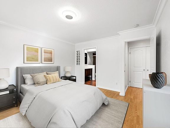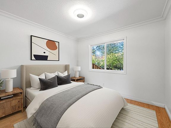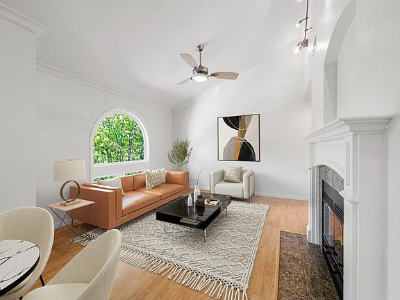 Beautiful 2-bedroom, 2.5-bath townhome nestled in the peaceful, tree-lined Montego Village community. This light and bright home features vaulted ceilings, laminate floors, recessed lighting, and dual-pane windows throughout. The chef's kitchen offers shaker-style cabinets, granite countertops, a decorative backsplash, pot filler, gas range, built-in microwave, and deep stainless sink. The primary suite includes a designer bath with a custom stall shower and vanity, plus a private outdoor deck. Enjoy additional outdoor living with a balcony off the dining area and fresh interior paint. With 1,108 sq. ft. of living space on a 1,296 sq. ft. lot, this inviting home combines comfort, style, and convenience in a beautifully maintained community.