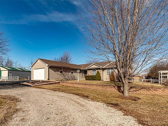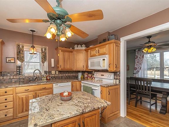 A nice ranch home with all the quint-essentials of country living. So secluded and quiet. Drive up and you will love the curb appeal, the long private drive way, you'll appreciate the extra care the home owner has taken around the grounds. Trees everywhere. A small livestock pond. You will "feel" the country. Easy access to the city. A super nice 30x24 shop/detached garage (220 volt) for all the toys and tinkering, a home office/sunroom/enclosed porch or she-shed (220 sq. ft.) right outside your backdoor, fully heated and cooled for year round usage. Awesome deck to enjoy the outdoors and entertaining, surrounded by all the trees and wildlife. Inside you will find a wood burning fireplace, wood floors, hickory cabinets and granite counter tops, primary suite with closet, large primary bath with jetted tub and shower. Great lay out from living room to kitchen to laundry room and dining. A nice drop zone from the garage. The over sized 2 car garage has a small underground 4 ft. crawl space with storm shelter as well as a nice and ample storage room for extras. This home includes the 4.3 acres to the west, corner of Oregon and Finney.