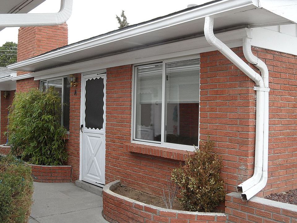 Great, quiet location on Inca Street near Comanche and Eubank. All apartments in this 4 plex are ground level with off street parking. Mitchell Elementary is across the street and has a playground and park. Apartment is NOT on Comanche. Double pane windows and brick construction keep this pitched roof apartment quiet and comfortable year round.