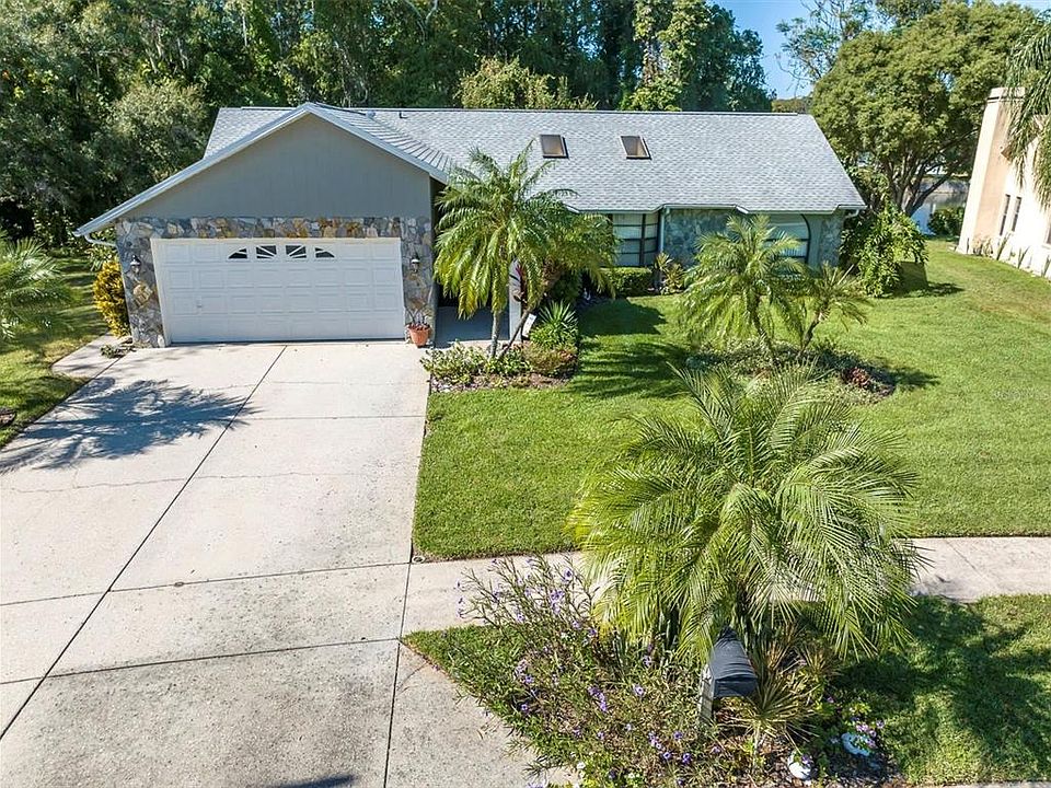 This home is designed for both relaxation and entertainment. The spacious living area and open floor plan provide the perfect backdrop for gatherings with family and friends. The large eat-in kitchen has tons of cabinets, and counter space and opens to the family room which leads out to the beautiful Lani & POOL area. The French doors open to the large screened lanai and inviting POOL which is perfect for a refreshing swim or just relaxing! The POOL's SOLAR HEATING means you can enjoy it year-round! One of the standout features of this property is the beautifully manicured lawn, set on a conservation lot, providing a serene backdrop and a sense of tranquility. Don't miss your chance to make it your own! Roof 2012/ HVAC 2014/ Solar for pool 2023/ Water heater 2021 To maintain the value of this lovely area, the main deed restrictions are No fences, boats, campers or commercial vehicles.