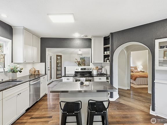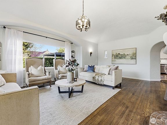 This classic Egyptian Revival Architecture home is elegant and unique beyond belief. A grand barrel-rolled ceiling greets you upon entering this North Tacoma gem. Arched windows and doorways display the Art Deco influence throughout. You will appreciate the solid hardwood floors and vintage features at every turn. The remodeled kitchen has newer appliances and cabinets. Invite your guests to join you in the generous dining room, a perfect space for holiday entertaining. The primary suite is a sanctuary retreat with French doors opening to the garden-like yard. Best of all is the ideal location in a quiet neighborhood, just minutes from Pearl Street and Point Defiance. You deserve this stunning home!