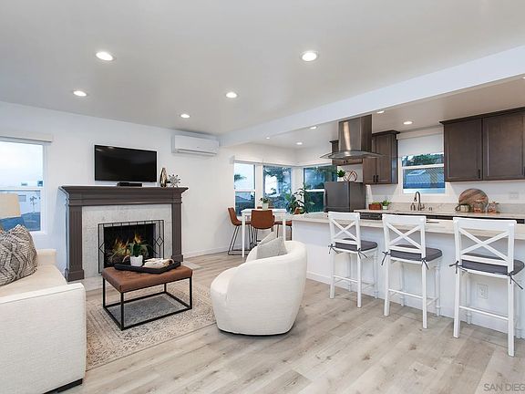 Beautifully remodeled single story beach bungalow in Point Loma. This stunning 2 bedroom + Game room / gym/ office, 1.5 bath home with a 957 Est. Sq. Ft. Detached 3 Car Garage has spared no expense! Open layout with modern quartz counters, stainless steel appliances, new windows, romantic fireplace, custom window coverings, and modern lighting throughout Newer construction 3 car detached garage with skylights, 3 garage doors, two side doors and large half bath could make an amazing ADU with it's own private patio behind the garage. Paid solar, water filtration, reverse osmosis, and a separate laundry room (below the house). Electric driveway gate and off street parking for an addl 5 vehicles, or boat or RV parking.