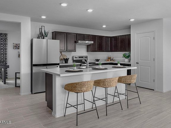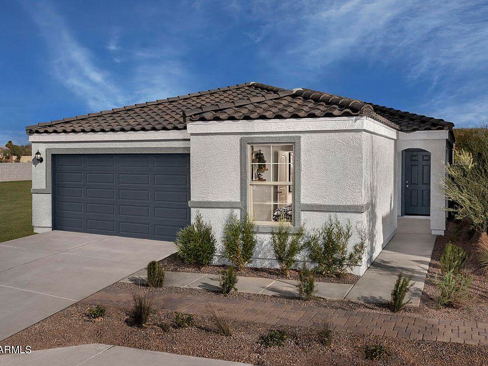 This single-story home features an airy open floor plan, complete with a spacious great room and tile flooring throughout the common areas. The kitchen includes a large center island and Whirlpool® stainless steel appliances. An open den offers versatile space, easily converting into a home office, game room, or formal dining area. Tucked away at the back of the house for added privacy, the primary bedroom comes with an oversized closet, while the primary bath includes a 42-in. garden tub/shower, an enclosed water closet, and a dual-sink vanity with sleek, WaterSense® labeled faucets. The backyard boasts a charming, covered patio and lush landscaping—ideal for outdoor entertaining and relaxation.